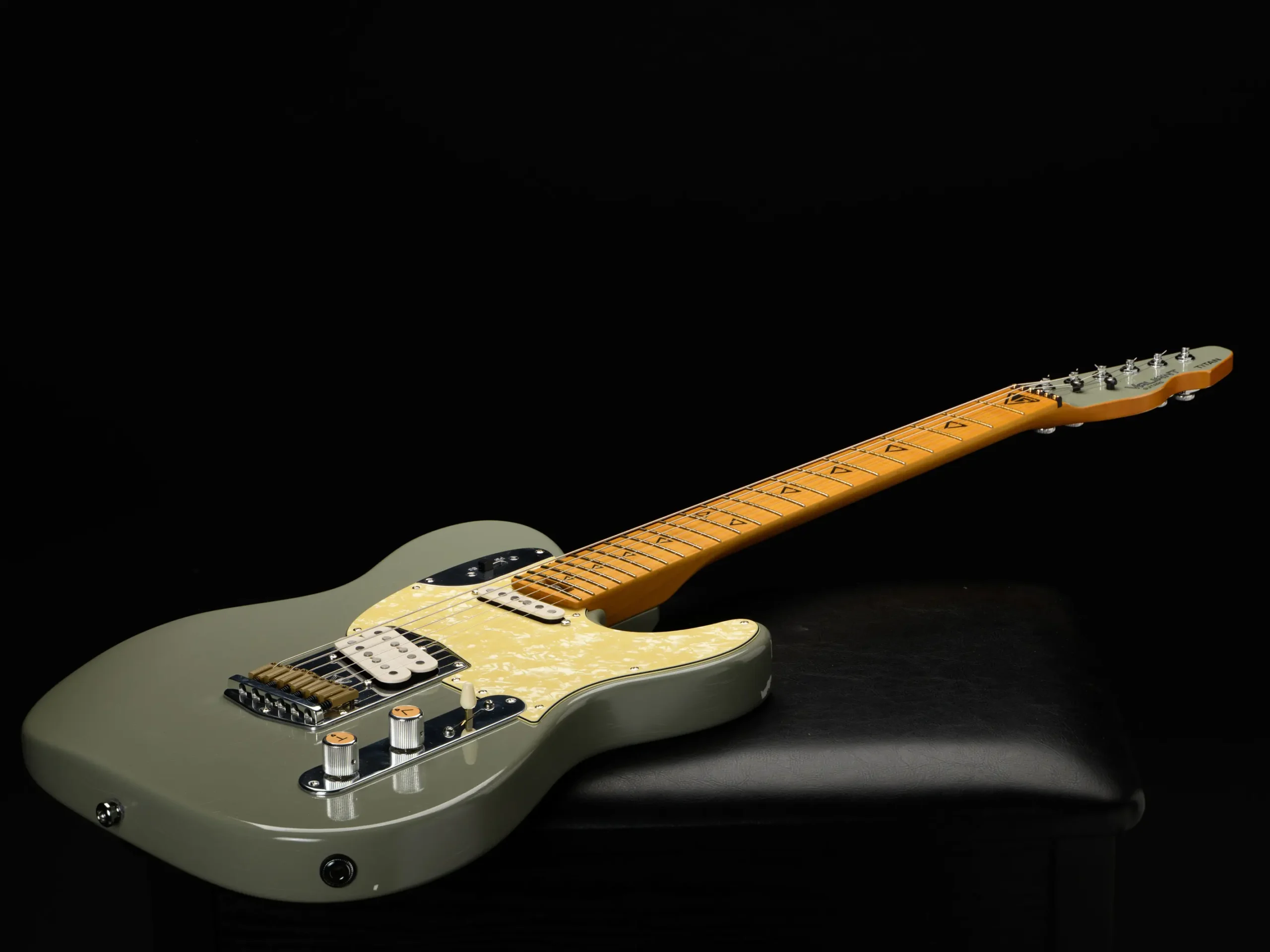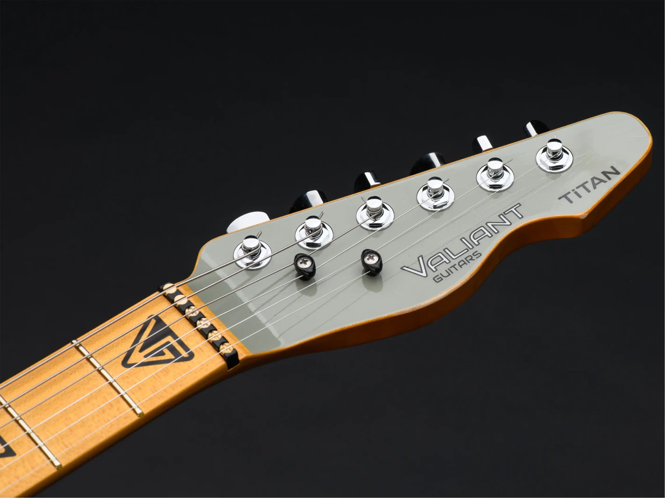 Wood:Hard-rock maple and baked maple, titanium-reinforced, Valiant Guitars “Diamond” volute/custom